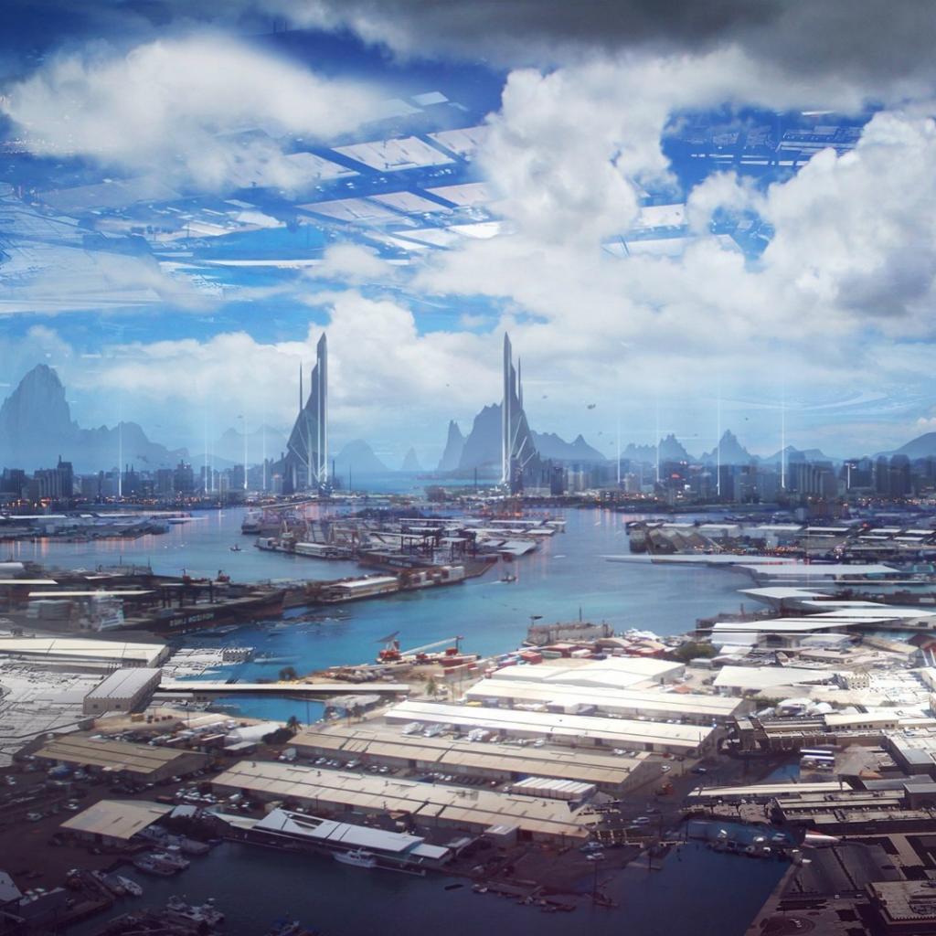 Wallpaper Rays of light in a fantastic city