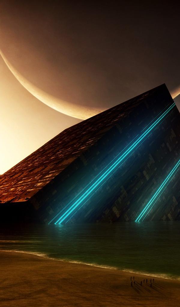 Wallpaper Black cube in the lake water