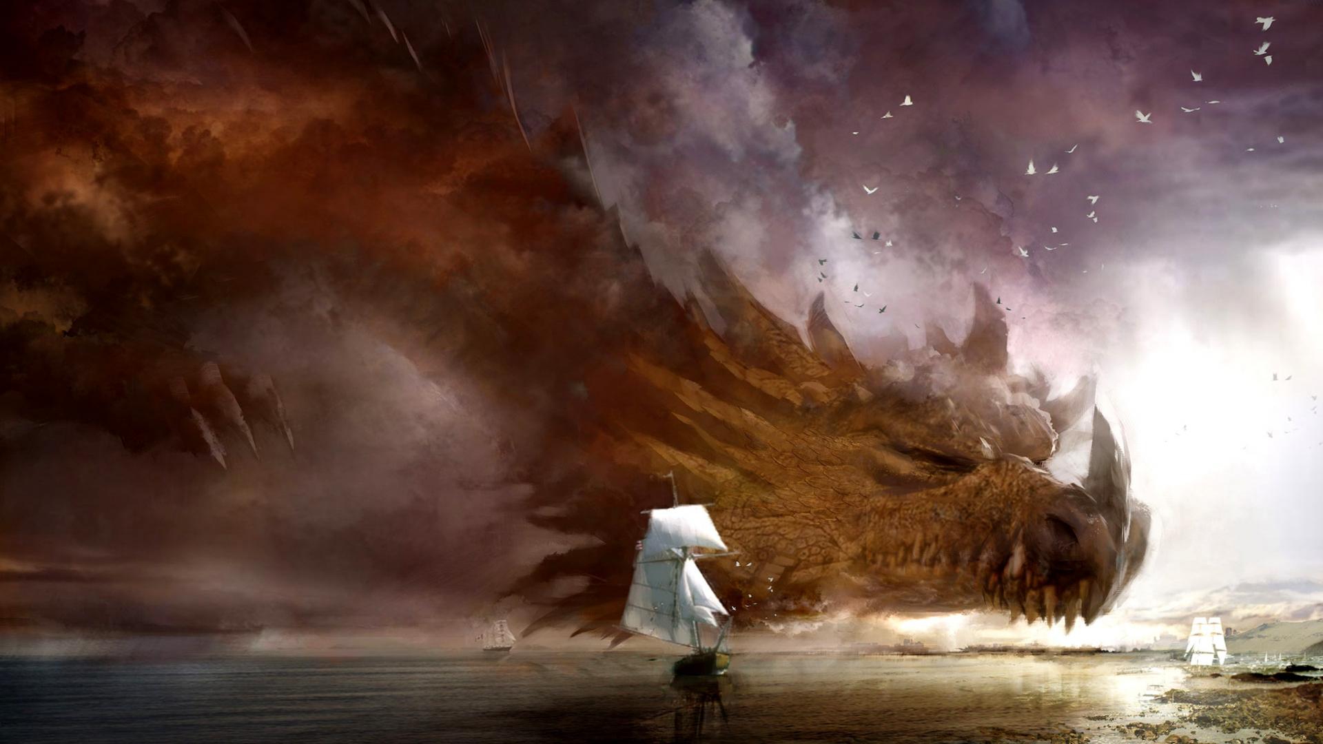 Wallpaper A huge dragon in the sea