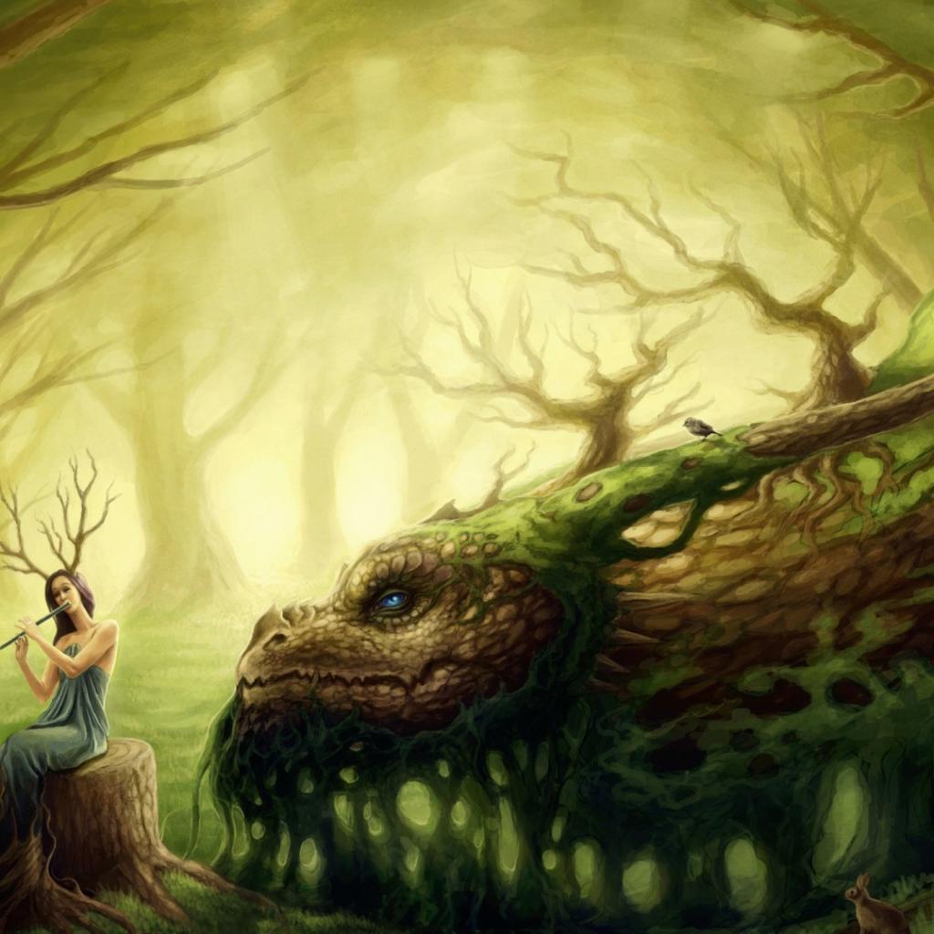 Wallpaper Forest Fairy playing the flute
