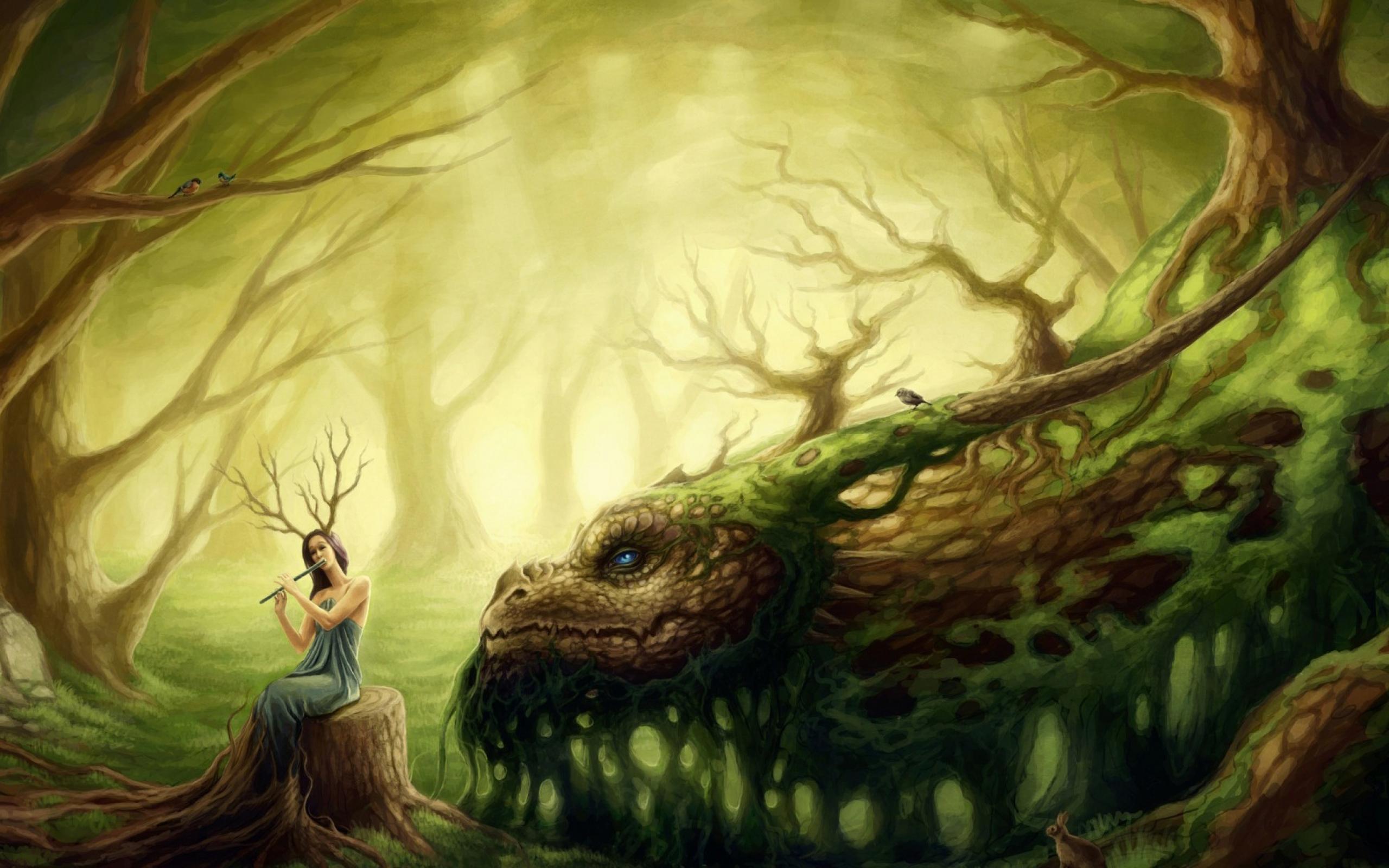 Wallpaper Forest Fairy playing the flute