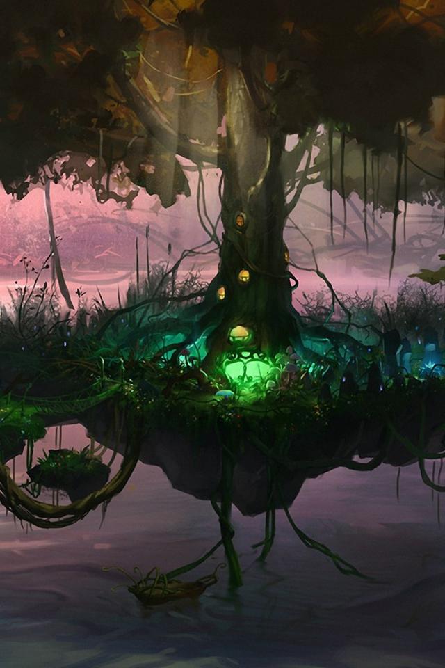 Wallpaper Fairy flying tree
