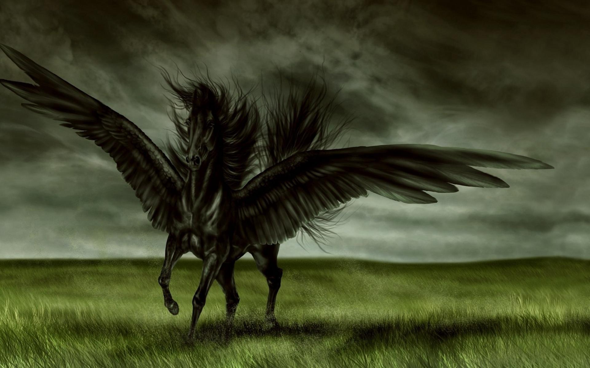 Wallpaper Black winged horse Pegasus