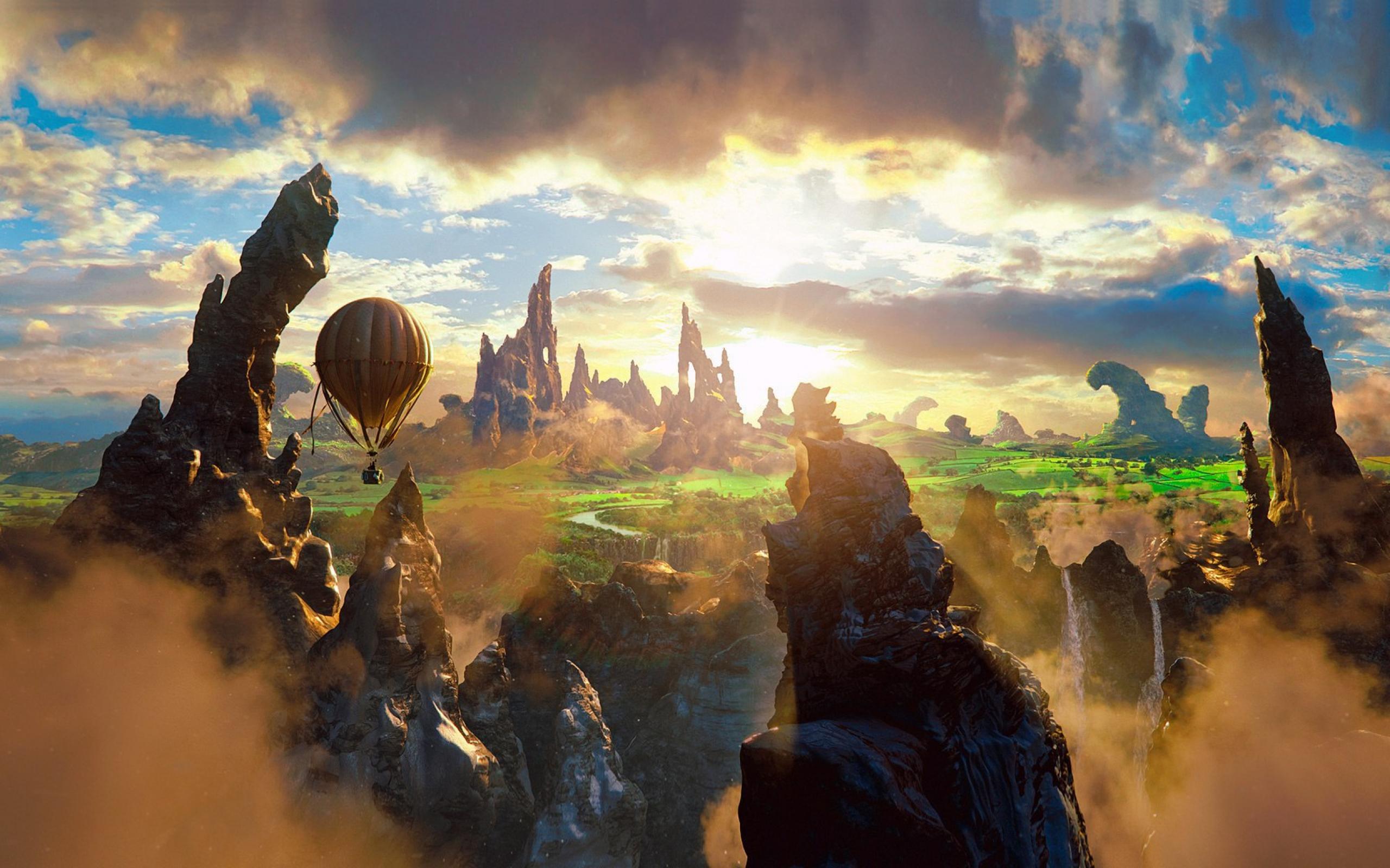 Wallpaper Balloon flies over the rocks