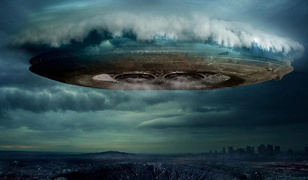 Wallpaper Flying saucer over the city