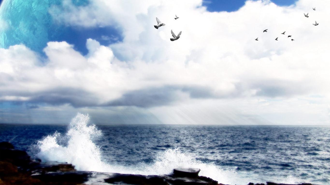 » Wallpaper Sea ,pigeons and space