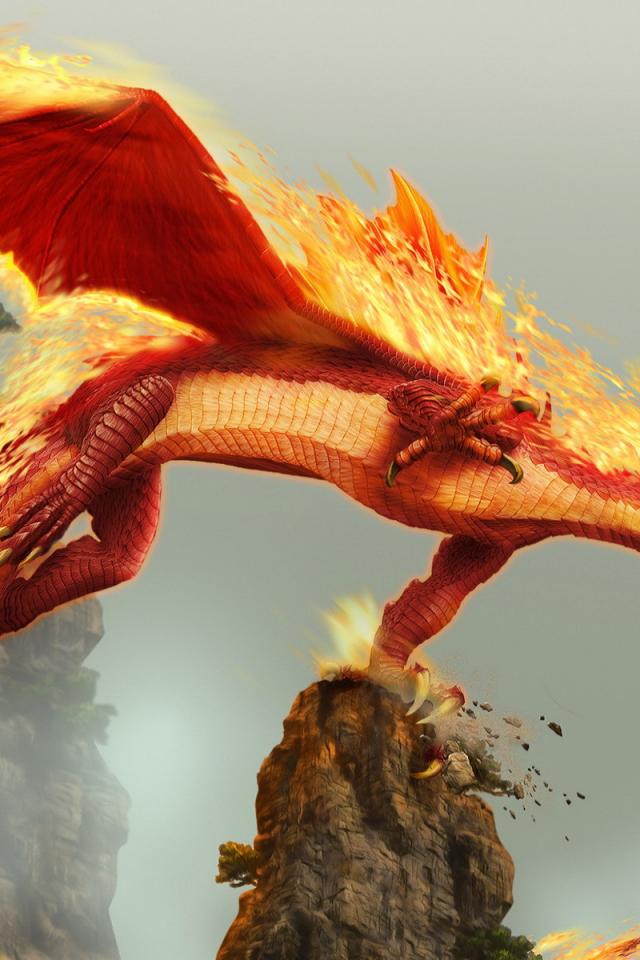 Wallpaper The fire dragon in the mountains