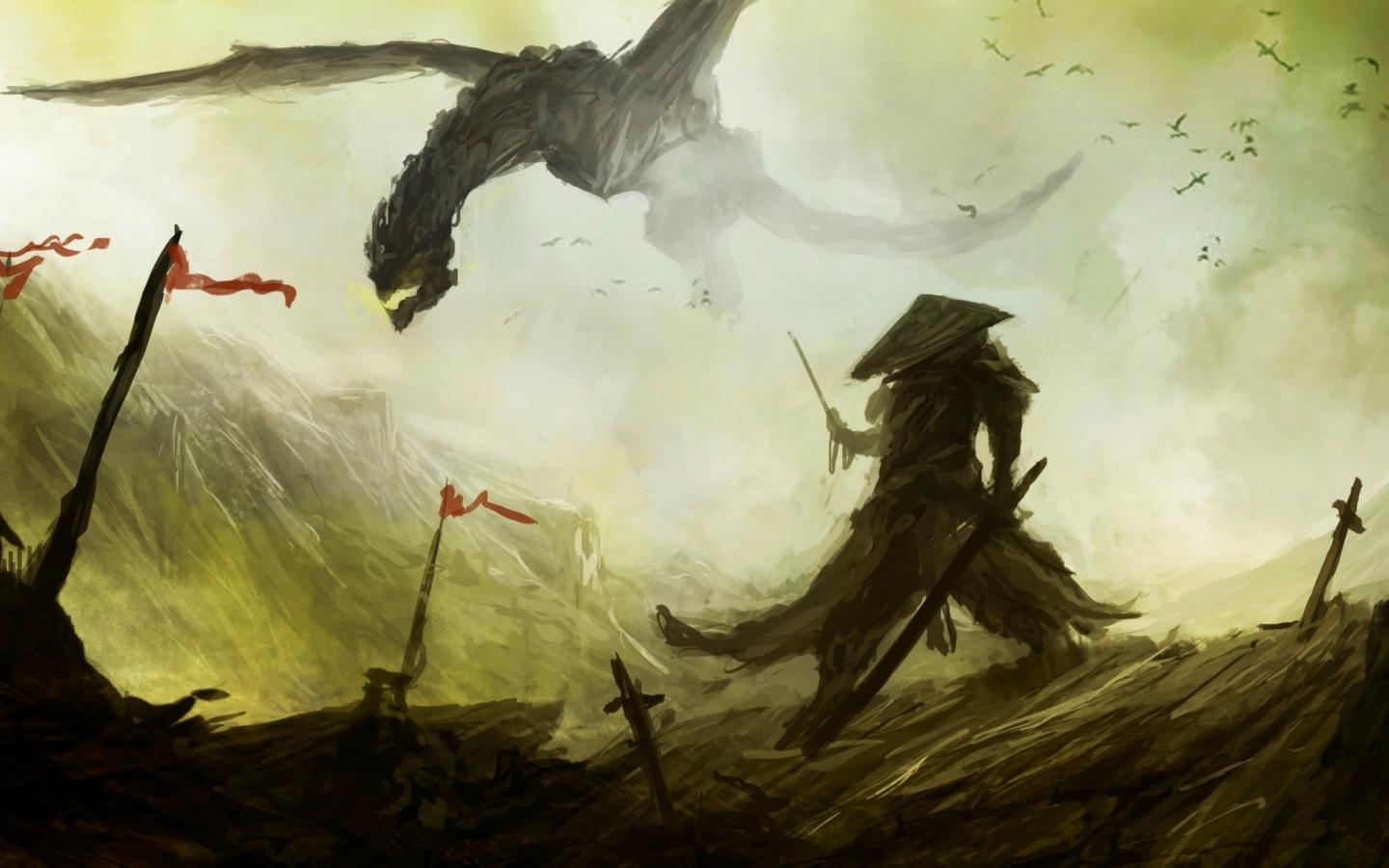 Wallpaper Samurai and dragon