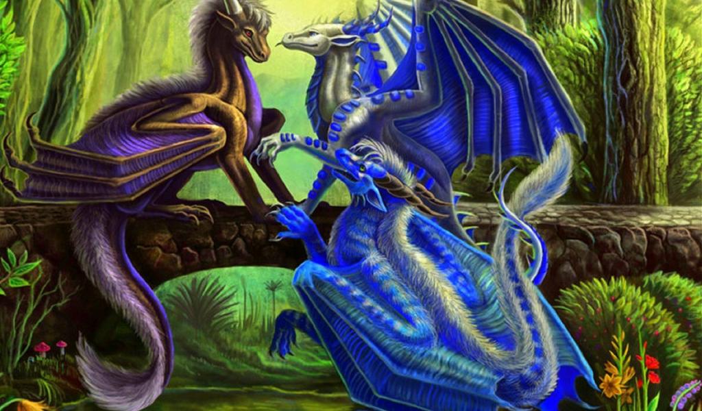 » Wallpaper Three blue dragon
