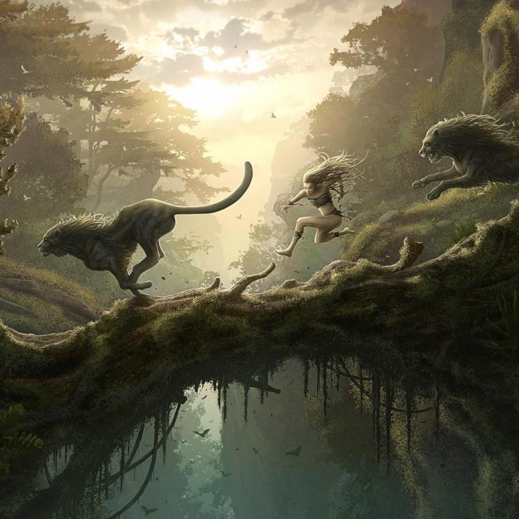 Wallpaper Running man and the lion