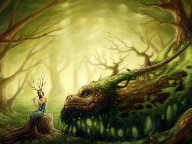 Wallpaper Forest fairy and dragon