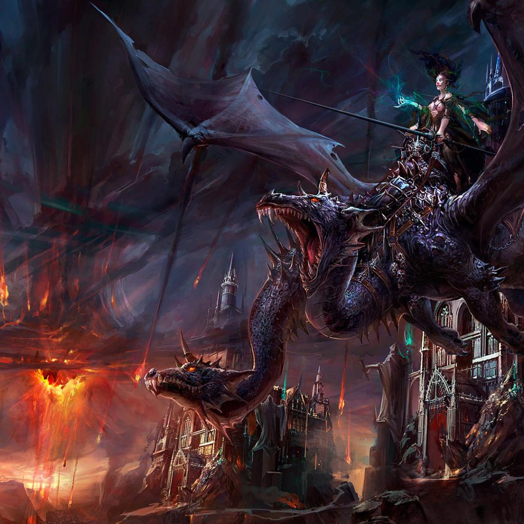 Wallpaper The girl on a two-headed dragon