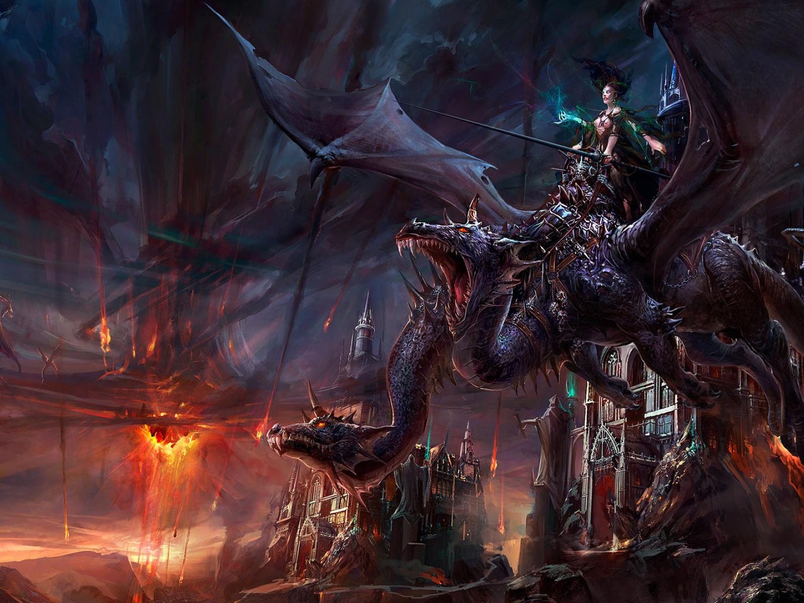 Wallpaper The girl on a two-headed dragon