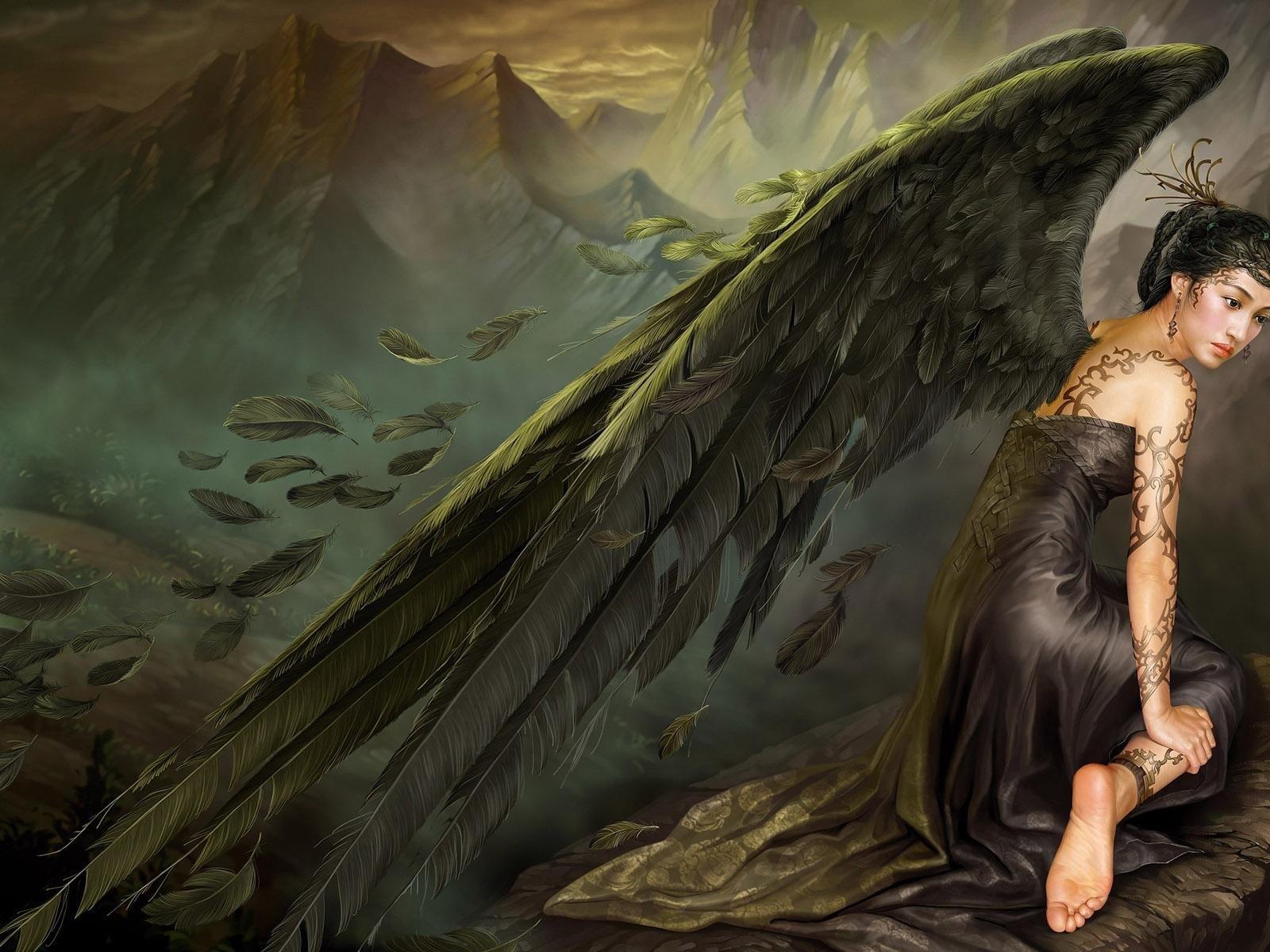 Wallpaper Black angel loses feathers