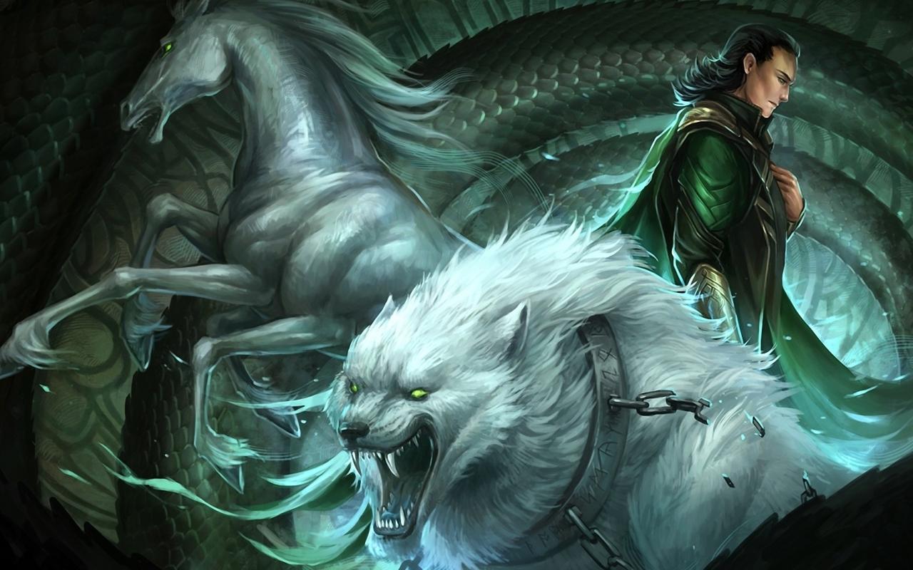 Wallpaper White Wolf and Raven