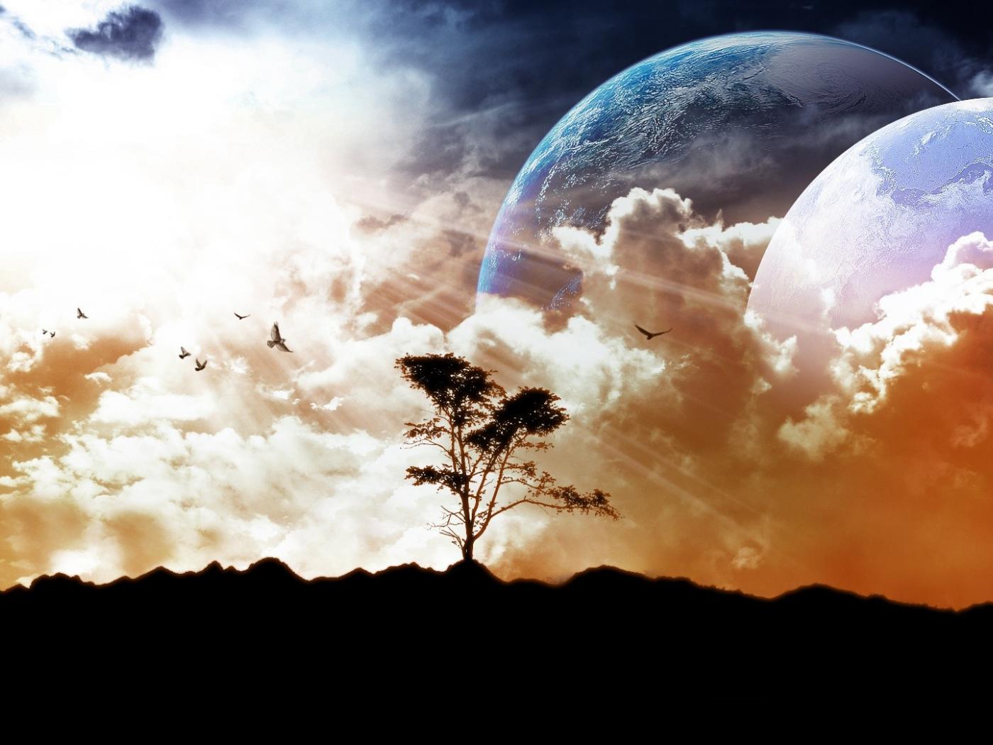 Wallpaper Planet beyond the clouds