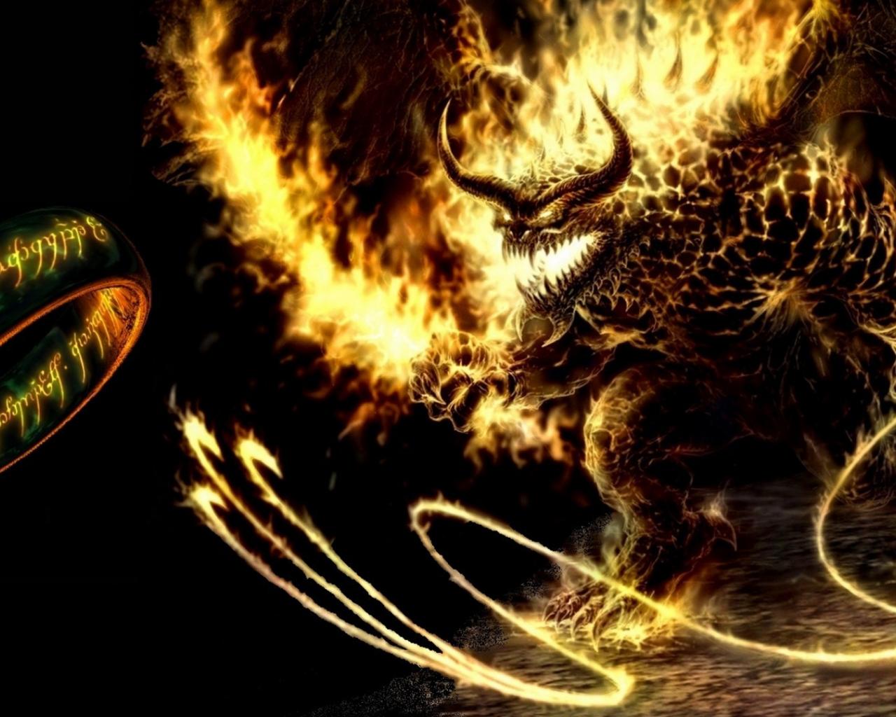 Wallpaper Fiery monster with a whip