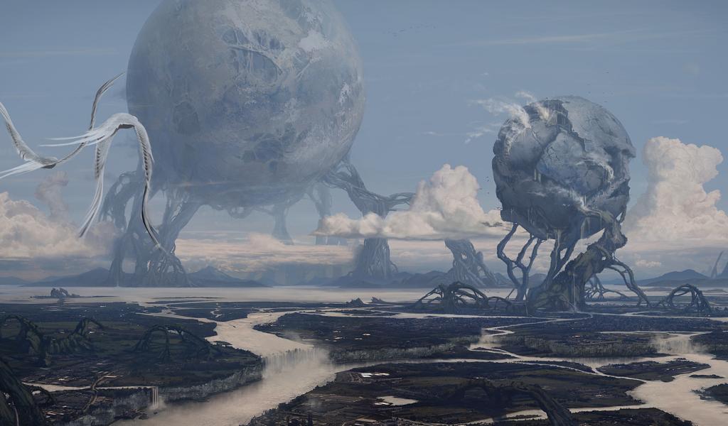 Wallpaper Fantastic landscape with balls
