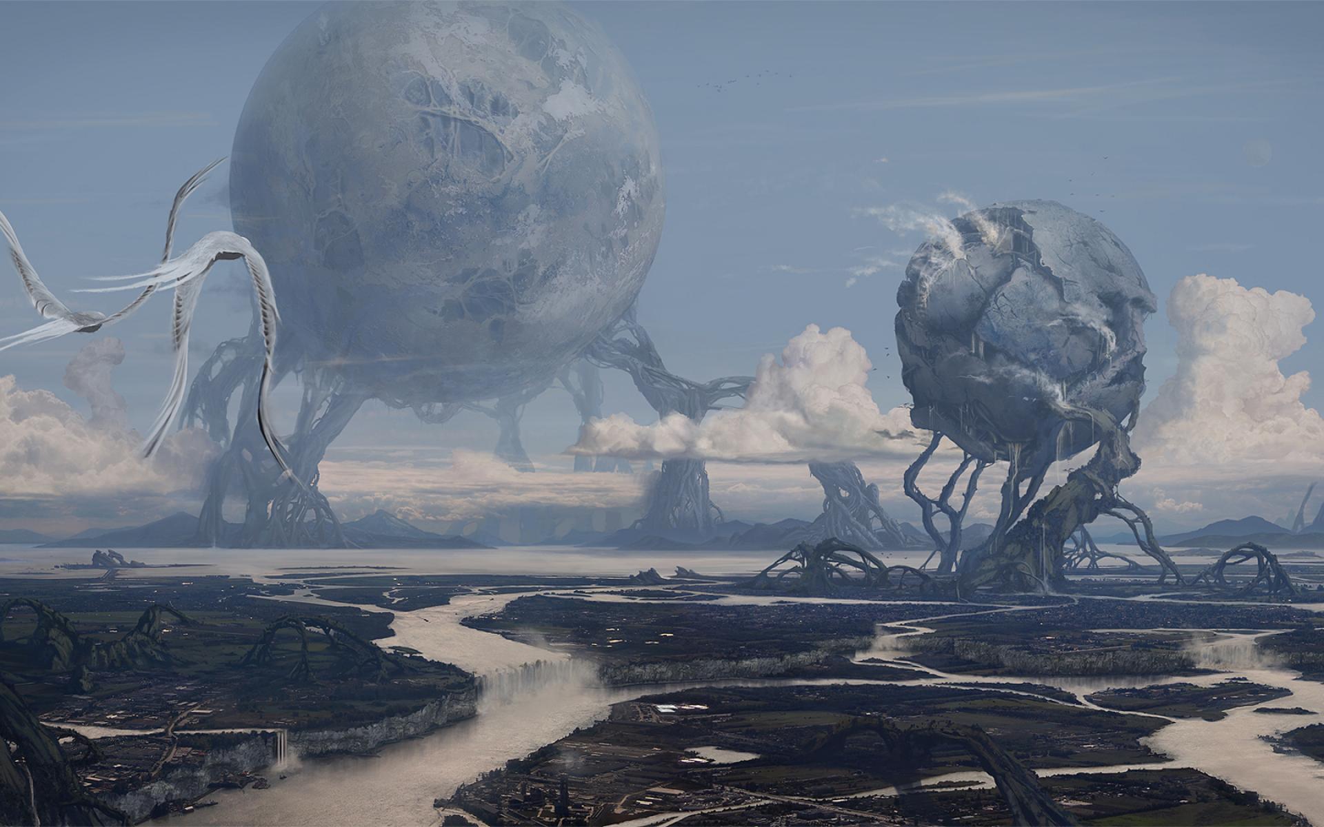 Wallpaper Fantastic landscape with balls