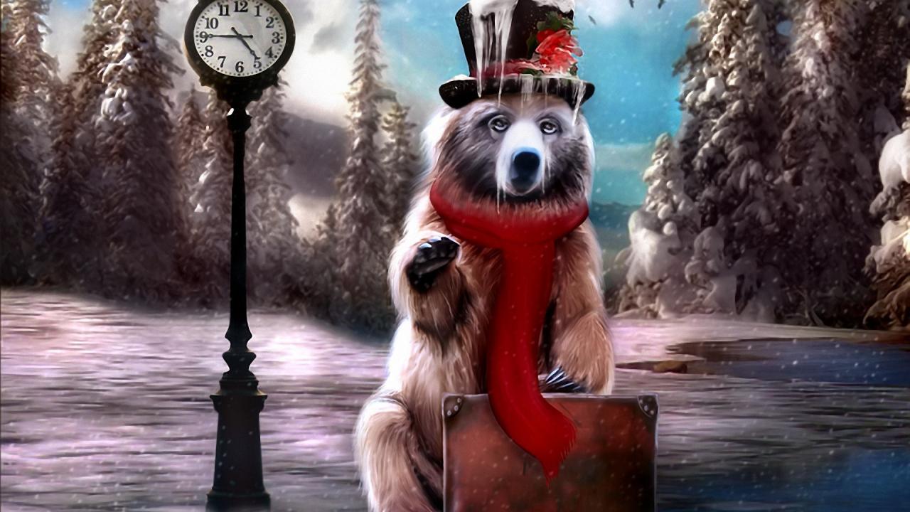 Wallpaper Bear with a suitcase