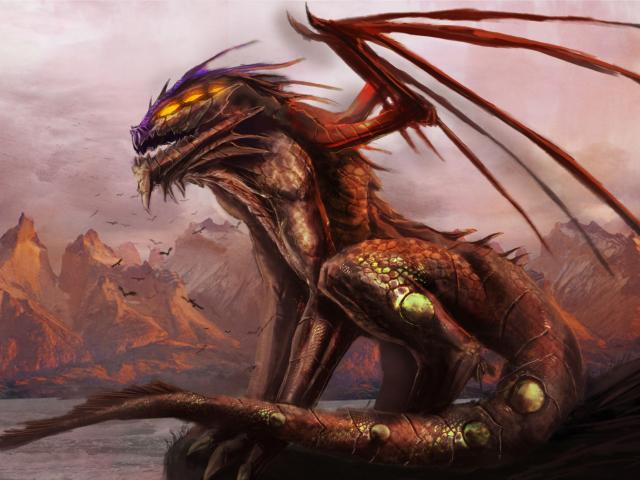 Wallpaper Dragon sitting by the sea