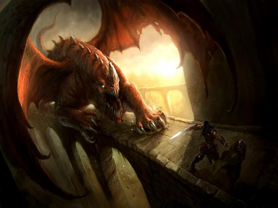 Wallpaper Dragon and warrior in the game Dragon Age Origins