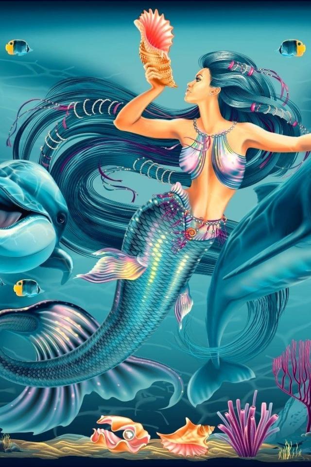 Wallpaper Mermaid with dolphins