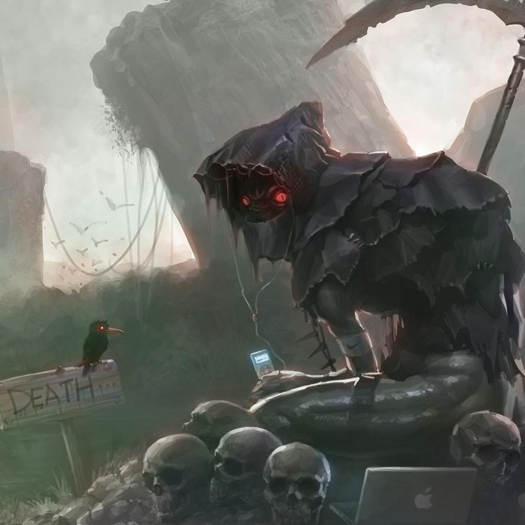 Wallpaper Death with a laptop Apple