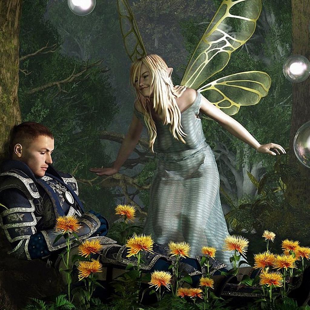 Wallpaper Fairy about sleeping man