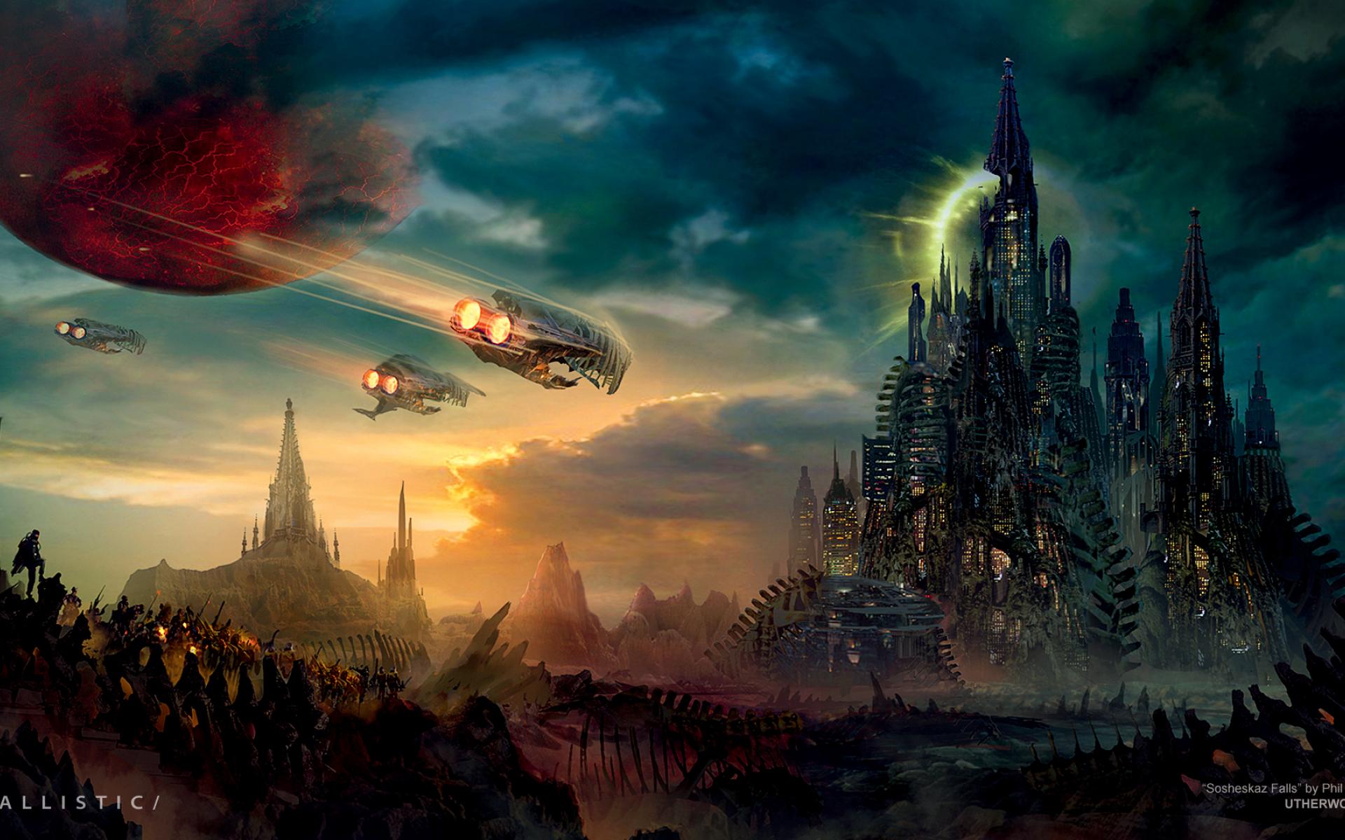 Wallpaper Space ships fly to the city
