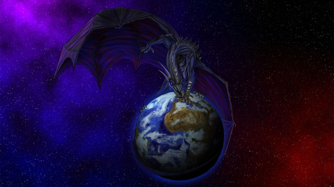Wallpaper Dragon sitting on earth