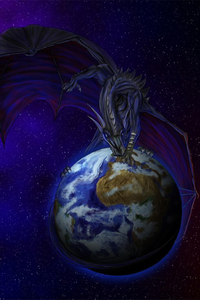 Wallpaper Dragon sitting on earth