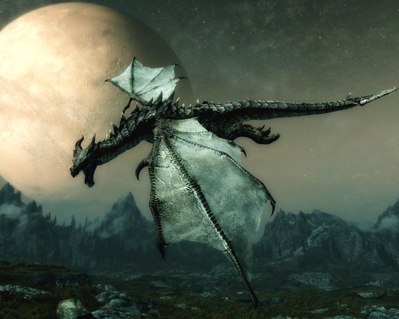 Wallpaper Dragon flying over the land