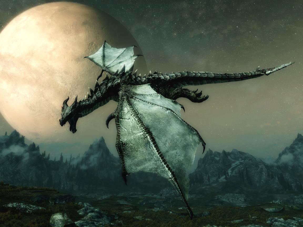 Wallpaper Dragon flying over the land