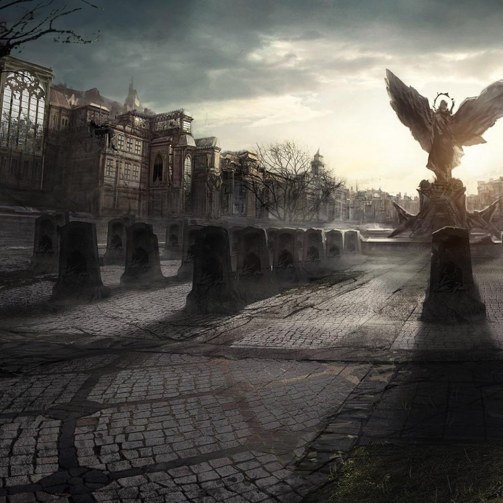 Wallpaper Angel statue in a destroyed city