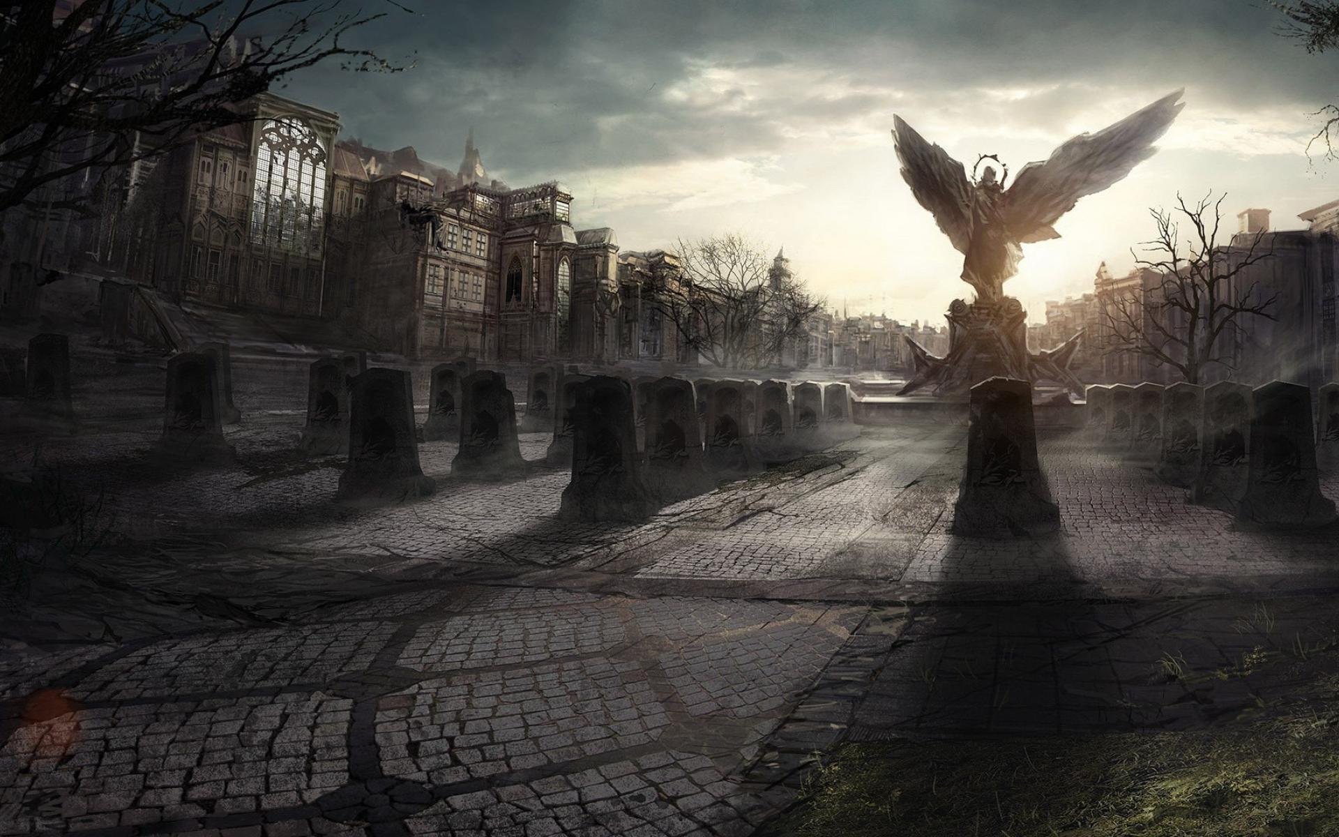 Wallpaper Angel statue in a destroyed city