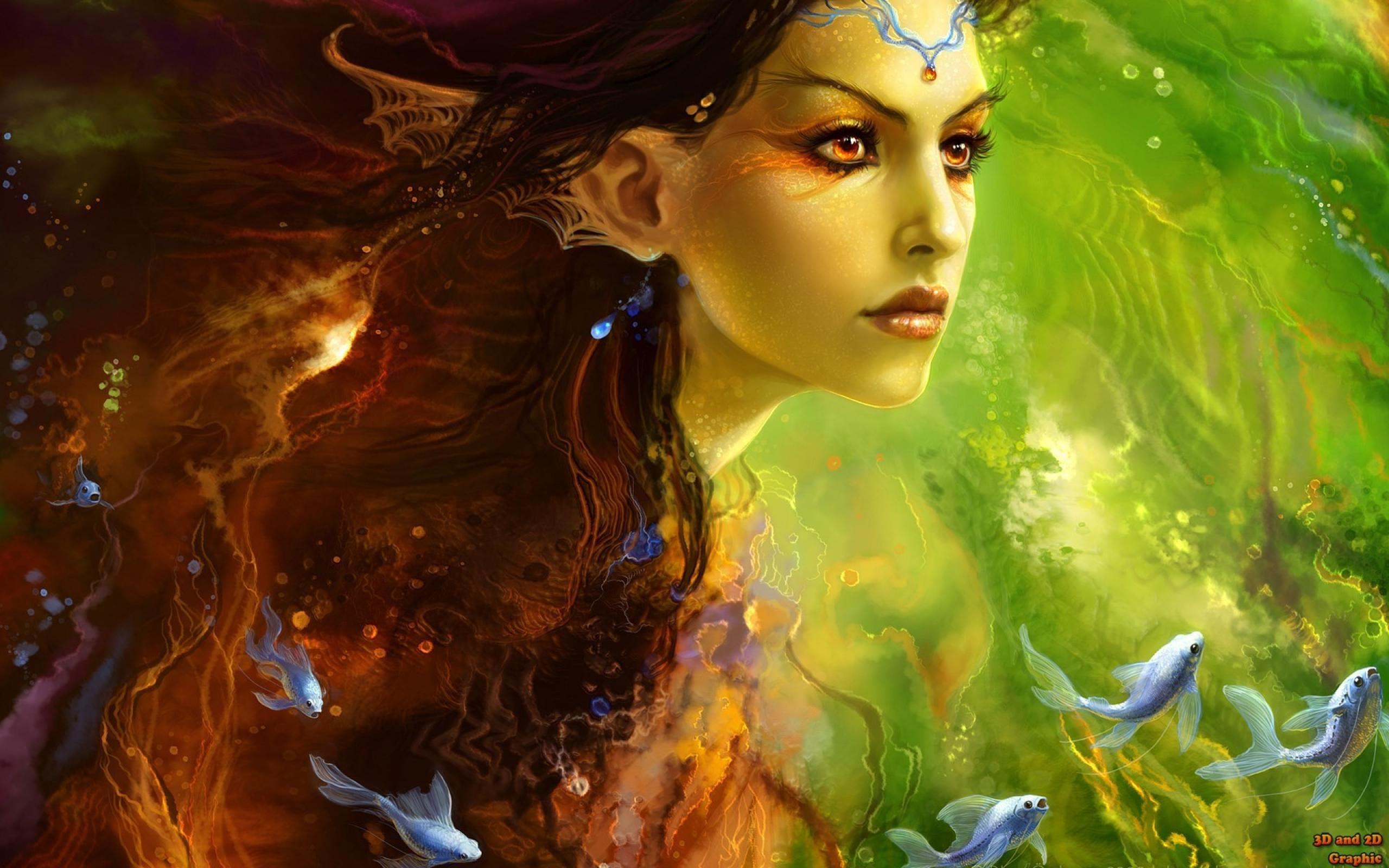 Wallpaper Mermaid with the fishes