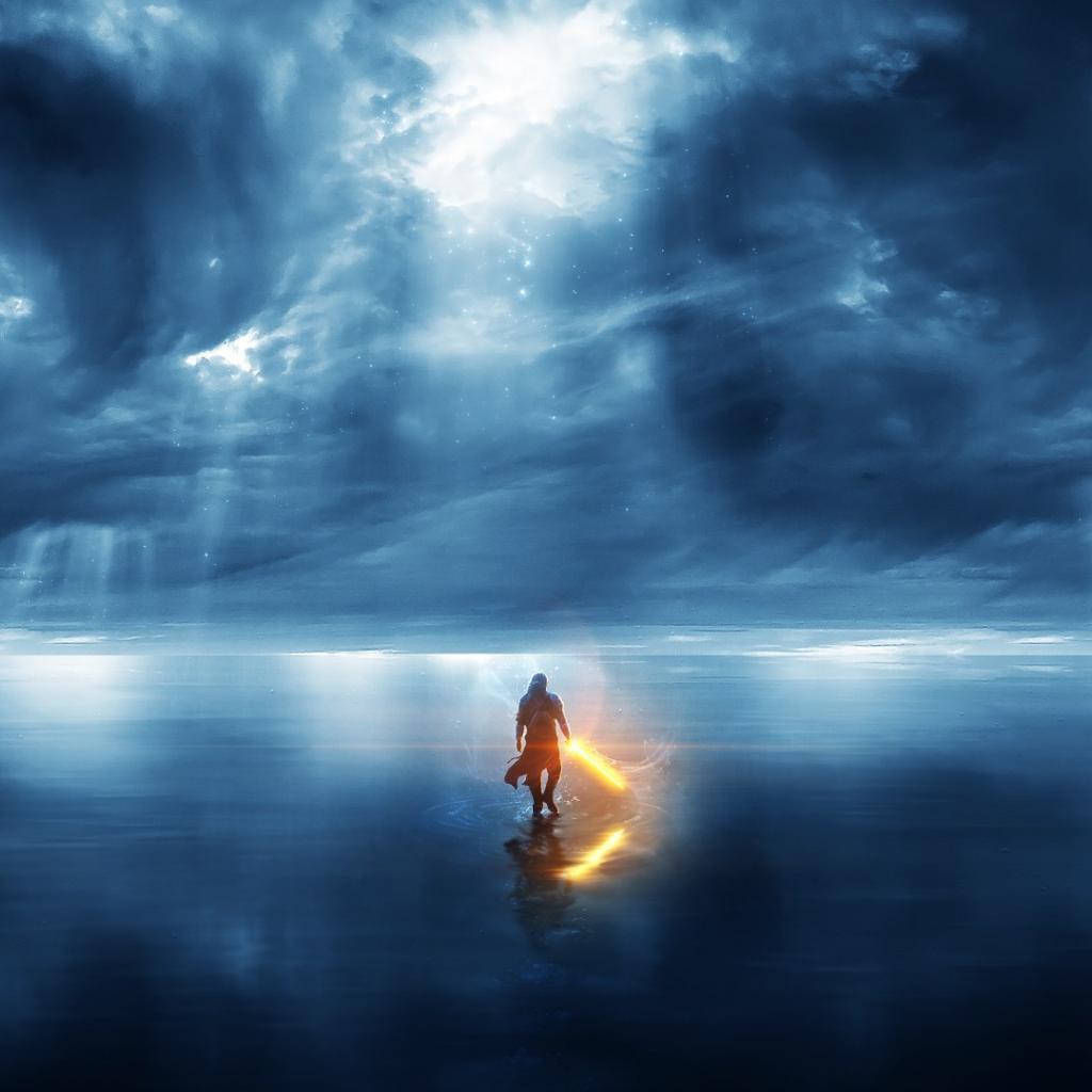 Wallpaper A man walks by the sea
