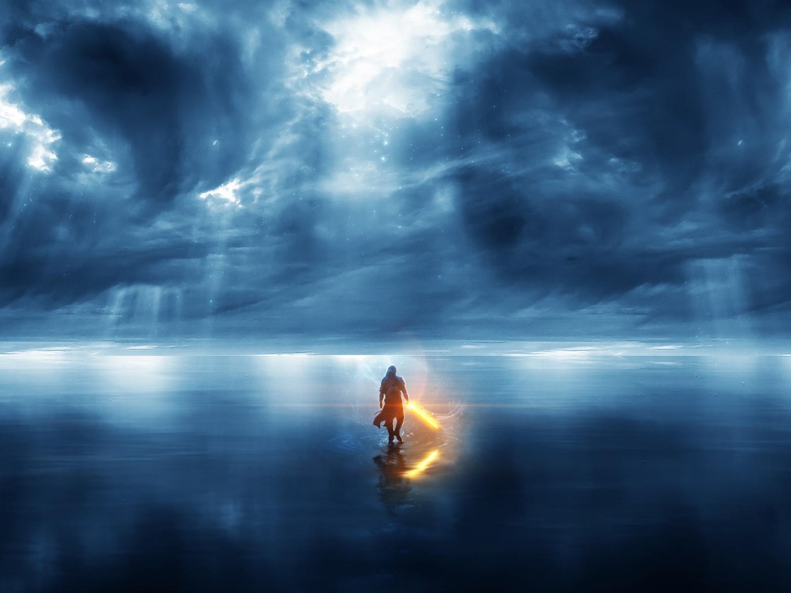 Wallpaper A man walks by the sea