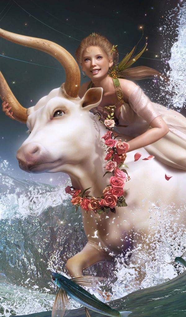 Wallpaper Girl on white cow