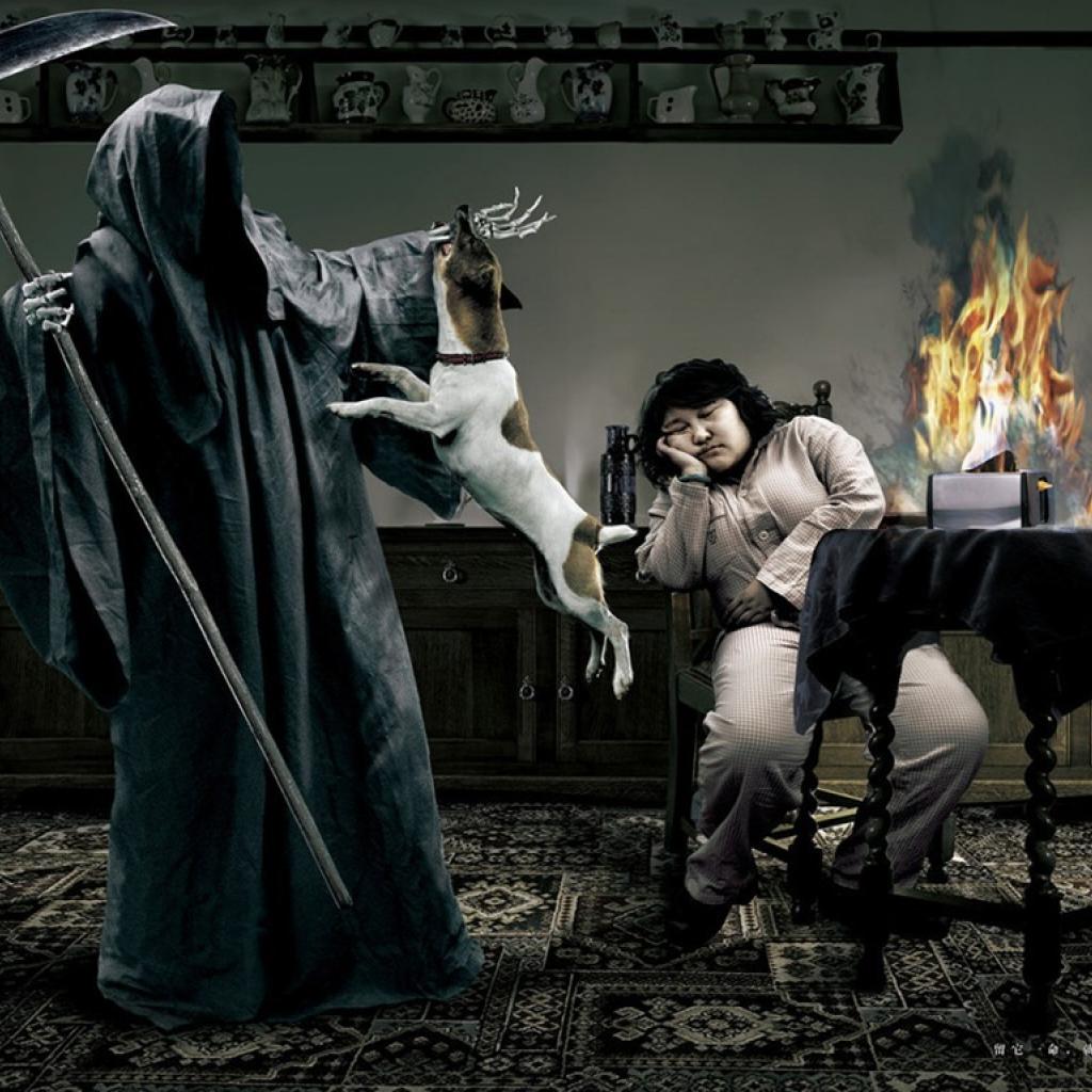 Wallpaper The dog protects the owner from death
