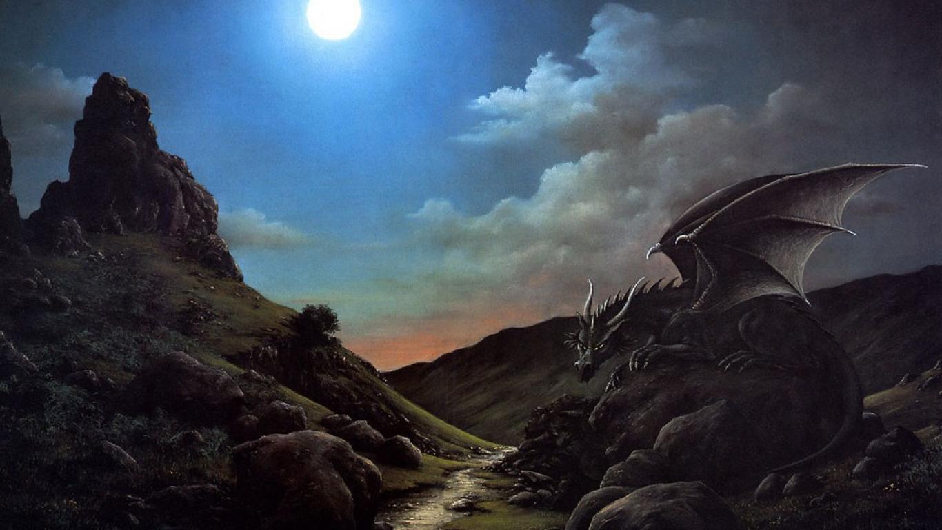 Wallpaper Dragon sits on a stone