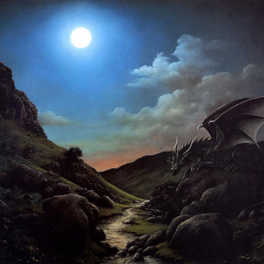Wallpaper Dragon sits on a stone