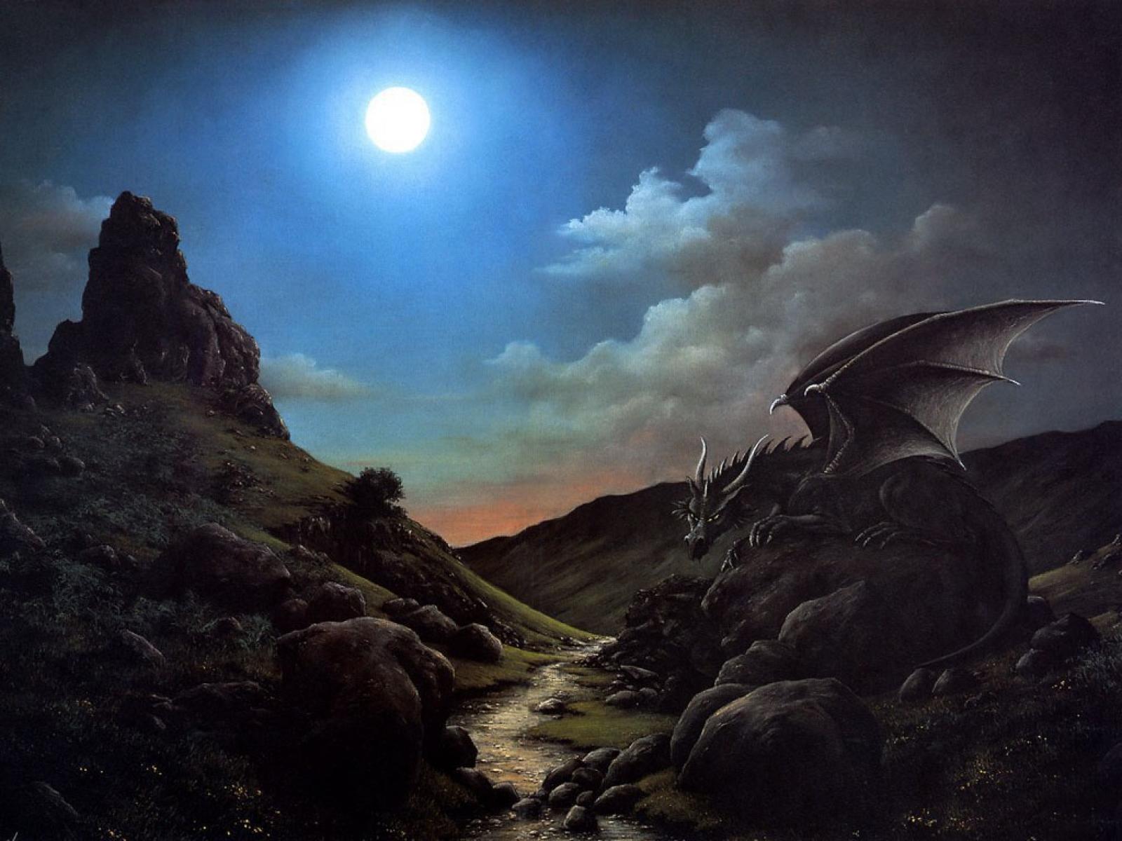 Wallpaper Dragon sits on a stone