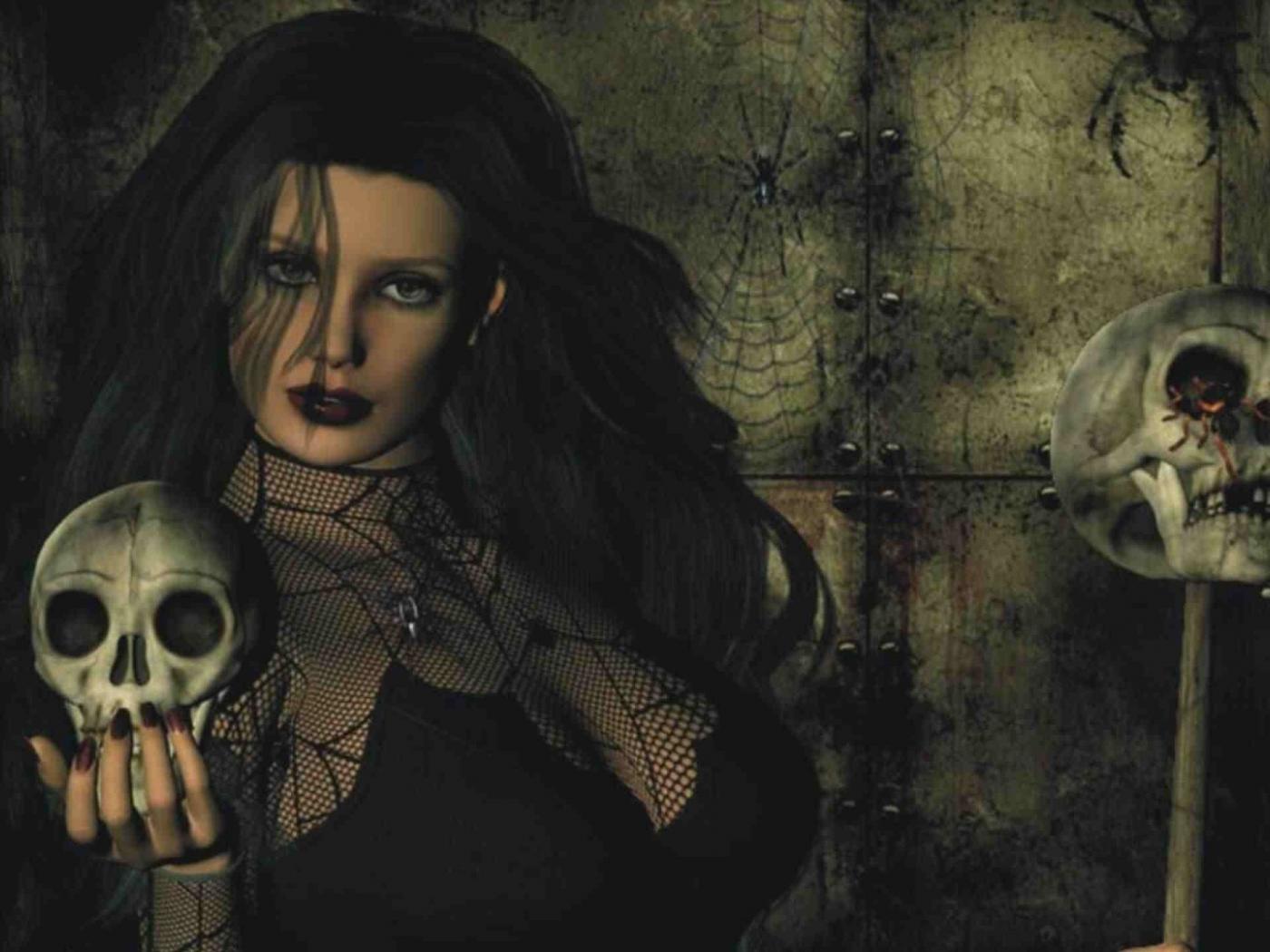 Wallpaper Girl with a skull