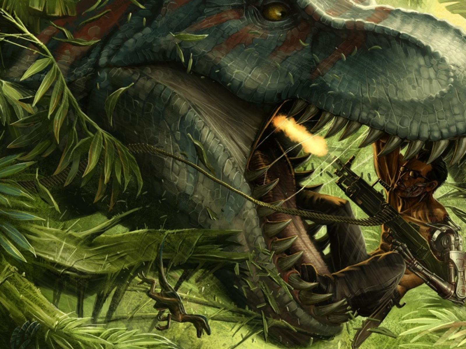 Wallpaper Cyborg kills dinosaur