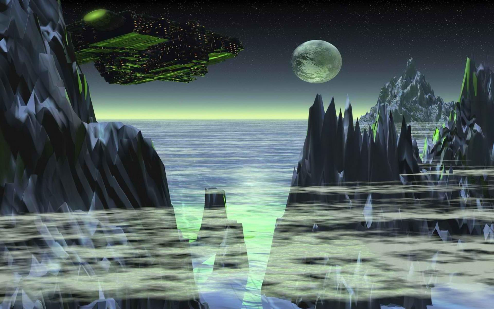 Wallpaper Spaceship above the planet