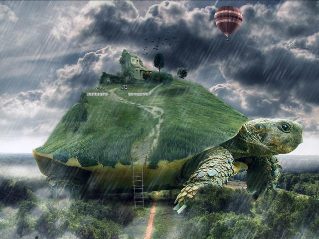 Wallpaper Dark clouds, House, ball, turtle