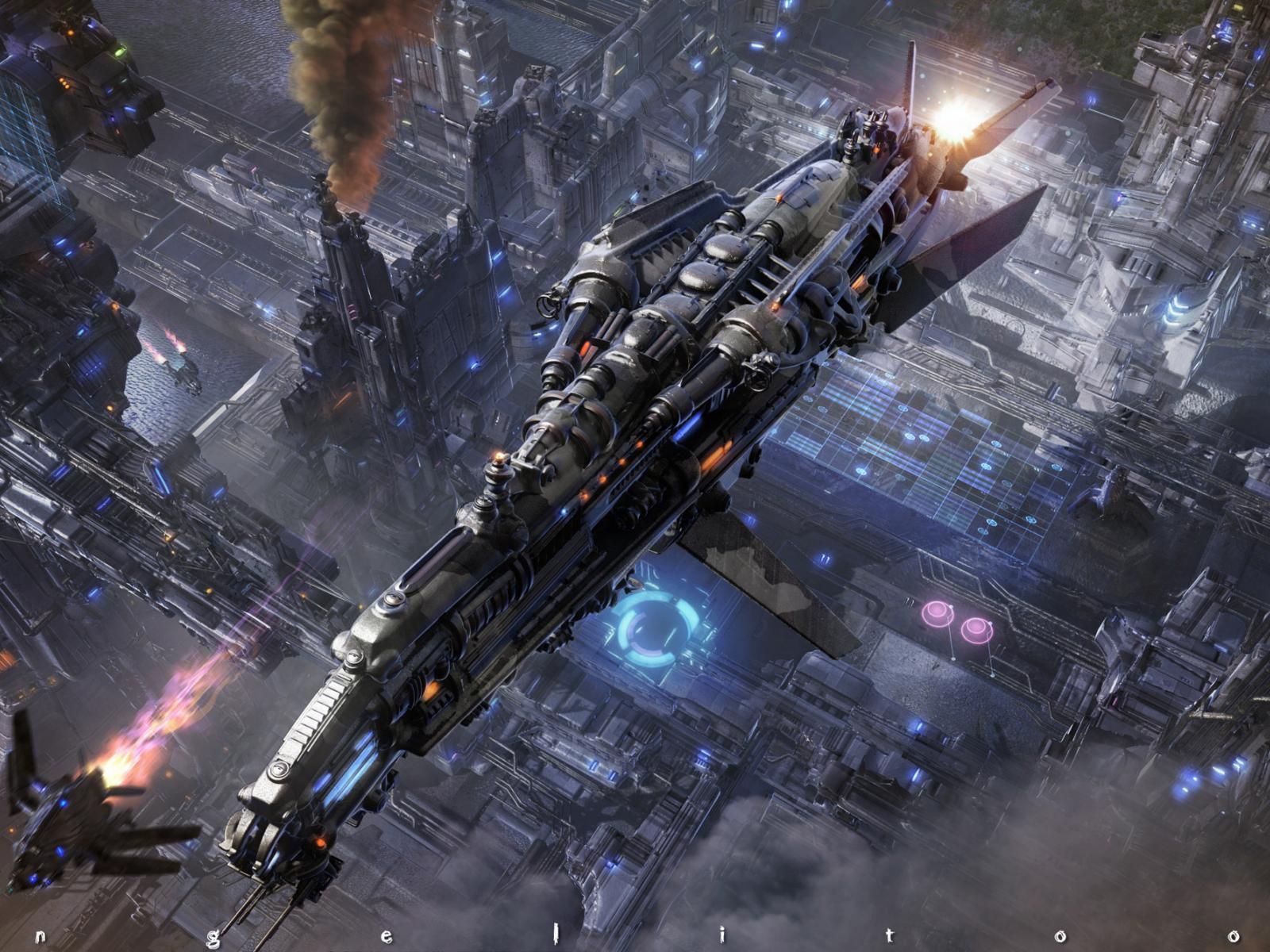 Wallpaper Smoke, Imagination, space ship, Cyberpunk