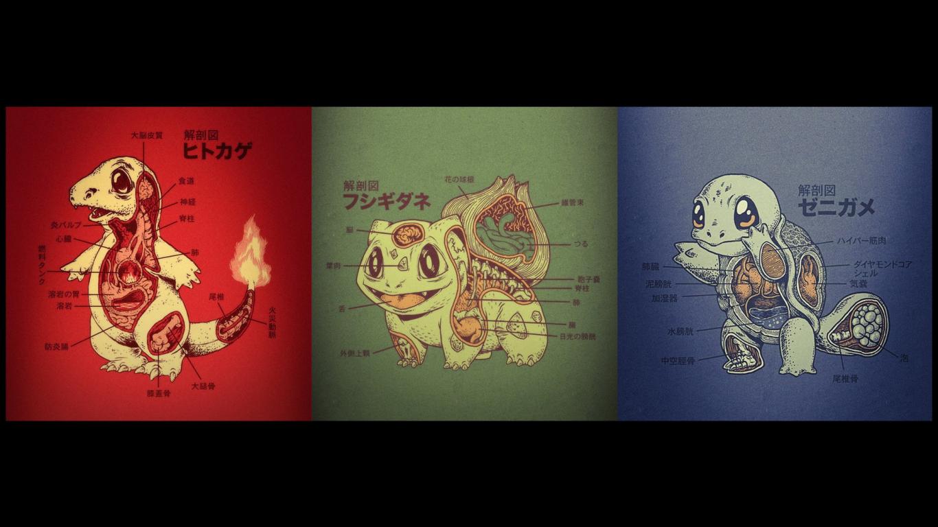 Wallpaper Squirtle, Bulbasaur, Charmander, anatomy